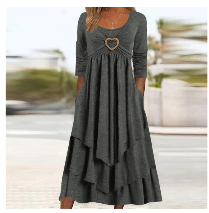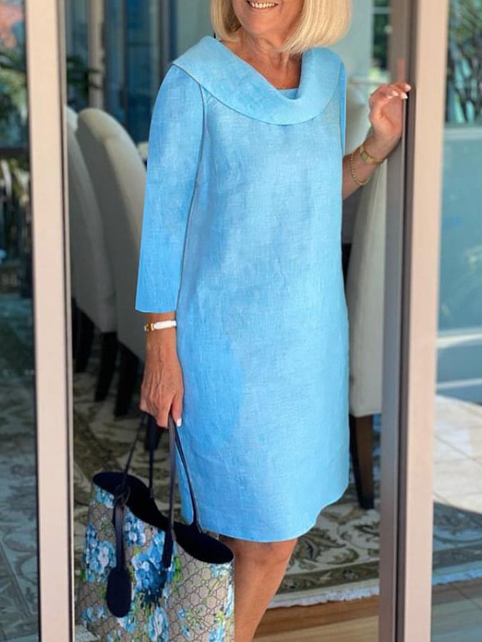 Women's Casual Solid Color Long sleeve Midi Dress