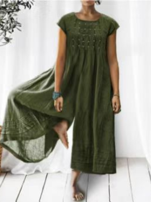 Casual Solid Color Short-Sleeved Jumpsuit